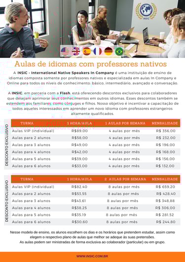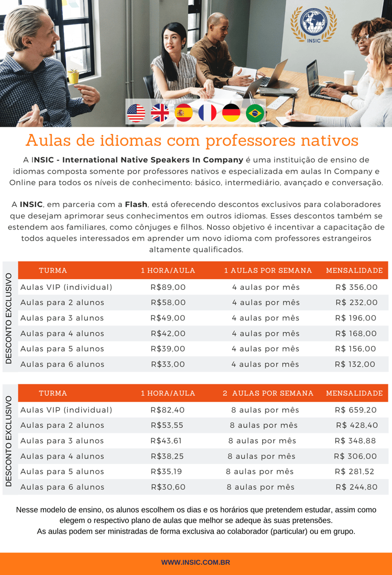 Nossos serviços estão disponíveis tanto na modalidade In Company, no conforto do Flash, quanto online.