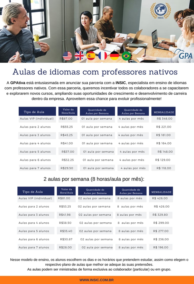 Agora, em parceria com a INSIC, incentivamos nossos colaboradores a investirem em seu desenvolvimento pessoal e profissional, oferecendo a oportunidade de aprender um novo idioma com qualidade e excelência.