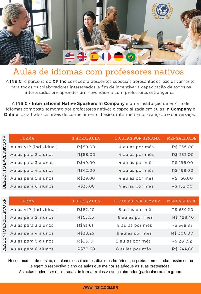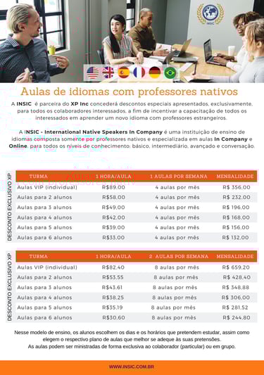 A XP Investimentos acredita na importância da comunicação global para o sucesso no mercado financeiro. Reforce suas habilidades linguísticas e destaque-se em cada negociação e estratégia. Contate-nos agora para embarcar nessa jornada de crescimento e conquistar o mundo dos investimentos